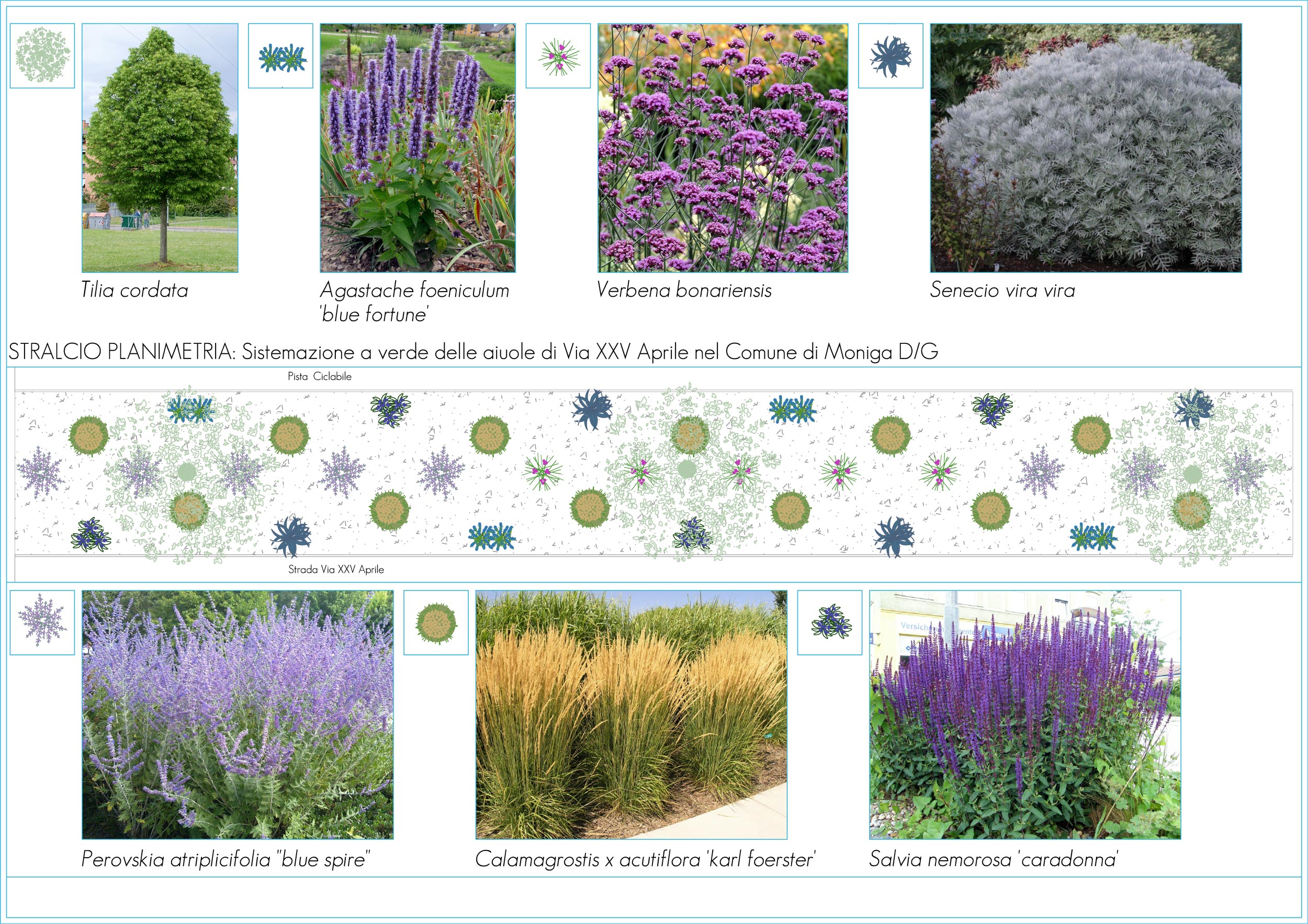 Tra le specie utilizzate, la graminacea Calamagrostis x acutiflora, e le erbacee perenni da fiore Verbena bonariensis, Perovskia atriplicifolia, Senecio vira vira, Agastache foeniculum, Salvia nemorosa e Stachys byzantina.
